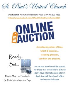 On-line Auction Calendar When: May 1, 2021 @ 12:00 am – May 31, 2021 @ 11:45 pm 2021-05-01T00:00:00-04:00 2021-05-31T23:45:00-04:00 Display on Sidebar